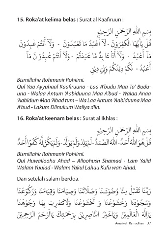 16. Roka’at keenam belas : Surat al Ikhlas :