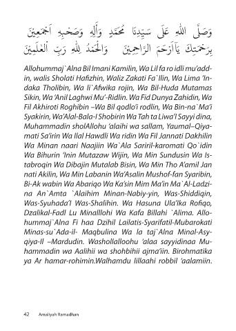 Allohummaj`Alna Bil Imani Kamilin, Wa Lil fa ro idli mu’add-