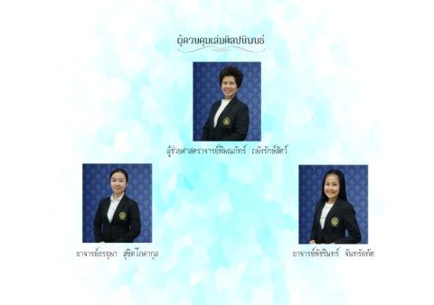 ผู้ ควบคุมเล่มศิลปนิพนธ์ ผู้ช่วยศาสตราจารย์พิมณภัทร์ ถมังรักษ์สัตว์ อาจารย์อรอุมา สุขิตโภคากุล อาจารย์พัชรินทร์ จันทรัดทัต