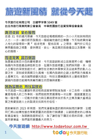 今天旅遊一向以嚴謹作業流程與品質管理制度為榮。分工合作、分層負