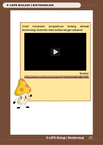 E-LKPD BIOLOGI | BIOTEKNOLOGI Untuk menambah pengetahuan tentang dampak bioteknologi, tontonlah video berikut dengan seksama! Sumber: https://www.youtube.com/watch?v=kh9kthH4BhM&t=219s E-LKPD Biologi | Bioteknologi 26