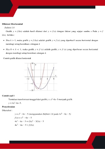 Jika 0 < k < 1, maka grafik y = f (x) adalah grafik y = f (x) yang diperbesar secara horizontal