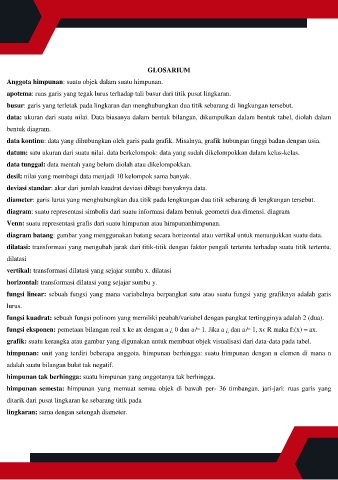 himpunan semesta: himpunan yang memuat semua objek di bawah per- 36 timbangan. jari-jari: ruas garis yang