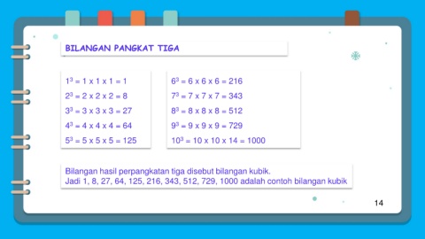 Bilangan hasil perpangkatan tiga disebut bilangan kubik.