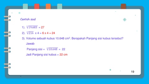 3). Volume sebuah kubus 10.648 cm . Berapakah Panjang sisi kubus tersebut?