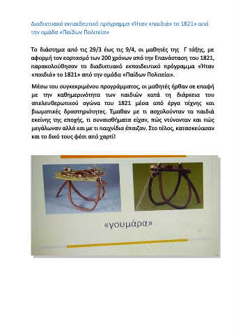 Διαδικτυακό εκπαιδευτικό πρόγραμμα «Ήταν «παιδιά» το 1821» από