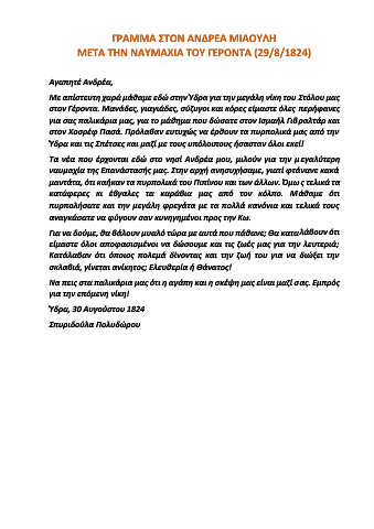ΓΡΑΜΜΑ ΣΤΟΝ ΑΝΔΡΕΑ ΜΙΑΟΥΛΗ