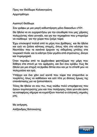 Προς τον Θεόδωρο Κολοκοτρώνη
