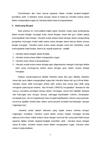 meningkatkan hasil belajar. Interaksi sosial antara siswa dengan siswa mengandung