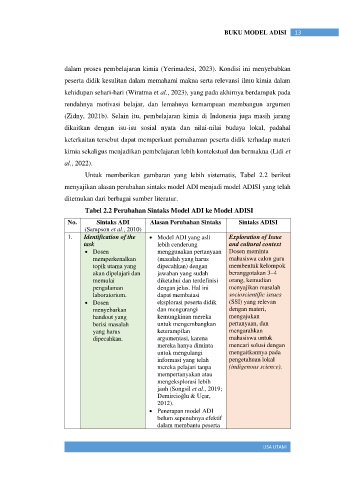 menyajikan alasan perubahan sintaks model ADI menjadi model ADISI yang telah