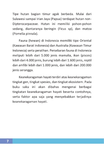 Tipe hutan bagian timur agak berbeda. Mulai dari