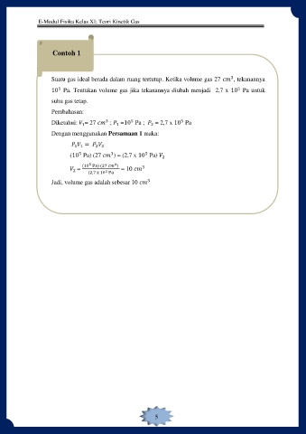 Suatu gas ideal berada dalam ruang tertutup. Ketika volume gas 27 , tekanannya