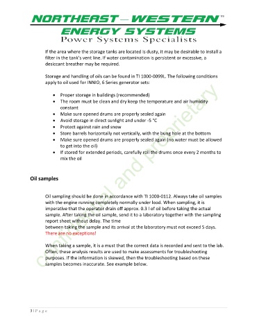 Storage and handling of oils can be found in TI 1000-0099L. The following conditions