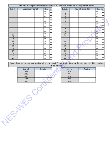 Take new bearing thickness measurements in 3 places and record the readings in millimeters.