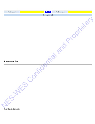 Technician 1 Reset Technician 2 NES-WES Confidential and Proprietary Hot Alignments Engine to Gear Box Gear Box to Generator