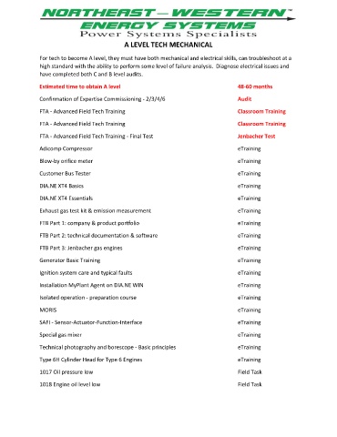 For tech to become A level, they must have both mechanical and electrical skills, can troubleshoot at a