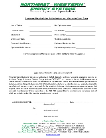 Customer, will be charged to Customer. NES-WES will use its best efforts to submit claims and obtain the applicable