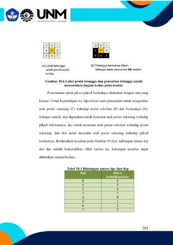 Gambar 10.6 Label posisi tetangga dan pencarian tetangga untuk