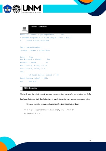Skrip di atas dapat dipanggil dengan menyertakan nama file berisi citra berskala