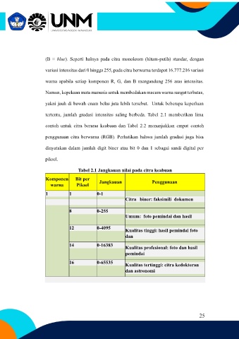 Tabel 2.1 Jangkauan nilai pada citra keabuan