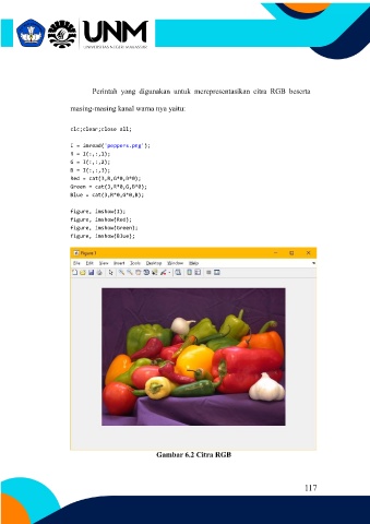 Perintah yang digunakan untuk merepresentasikan citra RGB beserta