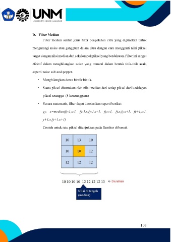target dengan nilai median dari sekelompok piksel yang berdekatan. Filter ini sangat