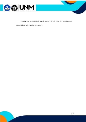 Sedangkan representasi kanal warna R, G, dan B berturut-turut ditunjukkan pada Gambar 3, 4, dan 5. 118
