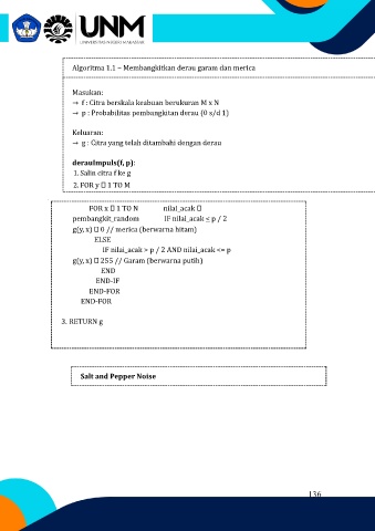 Algoritma 1.1 – Membangkitkan derau garam dan merica