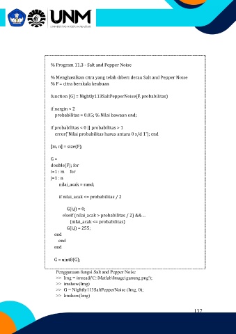 % Menghasilkan citra yang telah diberi derau Salt and Pepper Noise