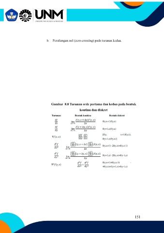 b.  Persilangan nol (zero-crossing) pada turunan kedua.