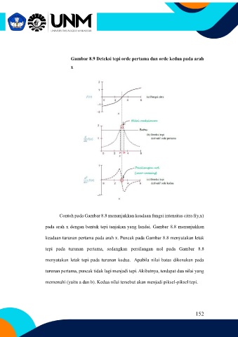 tepi pada turunan pertama, sedangkan persilangan nol pada Gambar 8.8