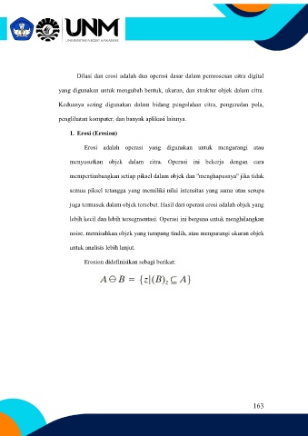 juga termasuk dalam objek tersebut. Hasil dari operasi erosi adalah objek yang