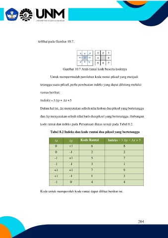 Tabel 8.2 Indeks dan kode rantai dua piksel yang bertetangga