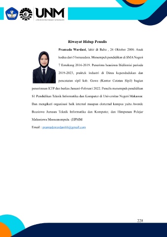 S1 Pendidikan Teknik Informatika dan Komputer di Universitas Negeri Makassar.