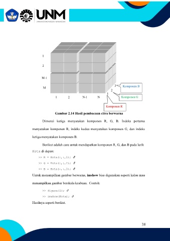 Dimensi ketiga menyatakan komponen R, G, B. Indeks pertama