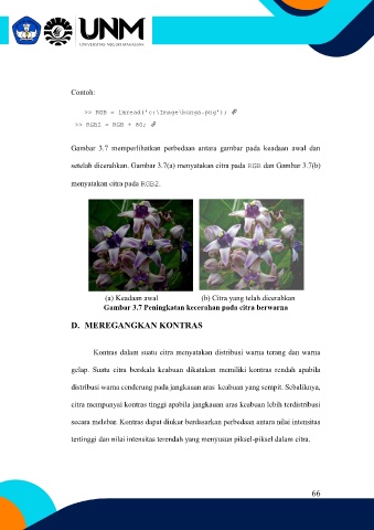 Gambar 3.7 Peningkatan kecerahan pada citra berwarna