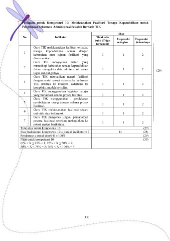 Skor maksimum kompetensi 10 = jumlah indikator × 2 14 (28)