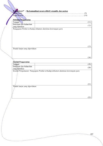 Setelah Pengamatan: Tanggapan Penilai terhadap dokumen dan/atau keterangan guru