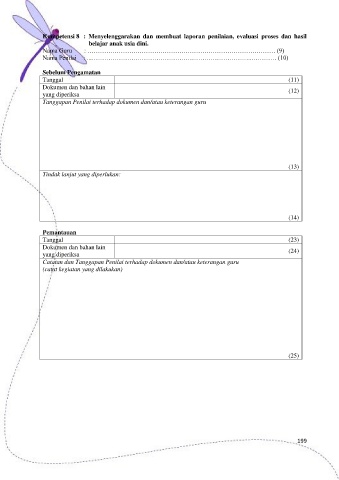 Catatan dan Tanggapan Penilai terhadap dokumen dan/atau keterangan guru