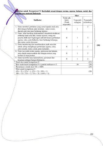 Penilaian untuk Kompetensi 9: Bertindak sesuai dengan norma, agama, hukum, sosial, dan