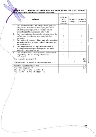 Penilaian untuk Kompetensi 10: Menampilkan diri sebagai pribadi yang jujur, berakhlak