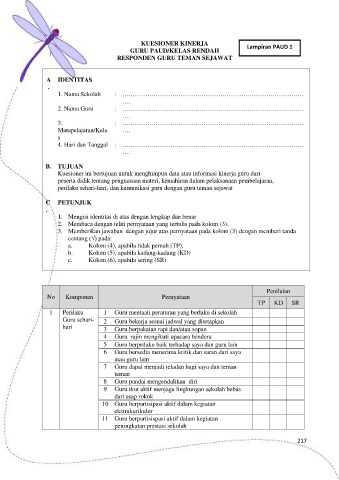Kuesioner ini bertujuan untuk menghimpun data atau informasi kinerja guru dari