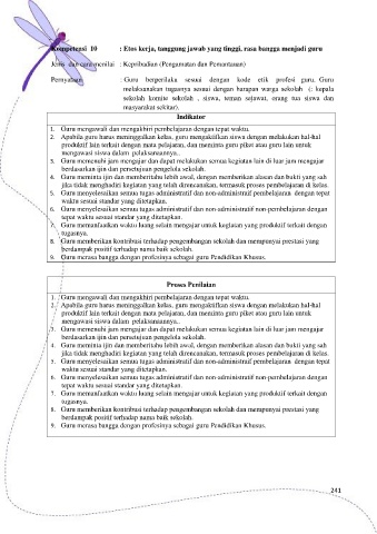 Kompetensi 10 : Etos kerja, tanggung jawab yang tinggi, rasa bangga menjadi guru