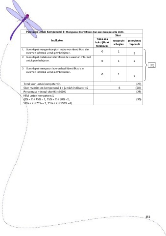 Penilaian untuk Kompetensi 1: Menguasai Identifikasi dan asesmen peserta didik.