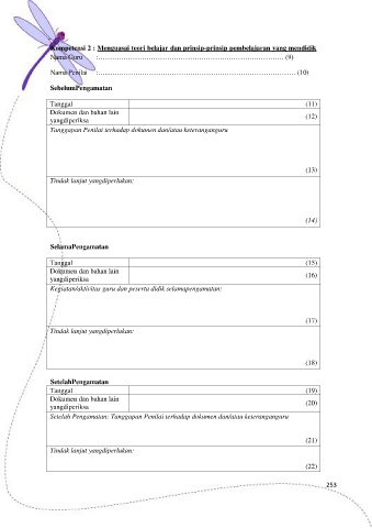 Setelah Pengamatan: Tanggapan Penilai terhadap dokumen dan/atau keteranganguru
