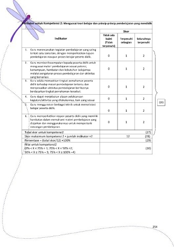 Penilaian untuk Kompetensi 2: Menguasai teori belajar dan prinsip-prinsip pembelajaran yang mendidik
