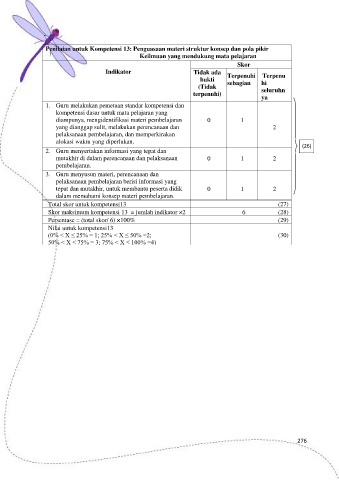 Penilaian untuk Kompetensi 13: Penguasaan materi struktur konsep dan pola pikir