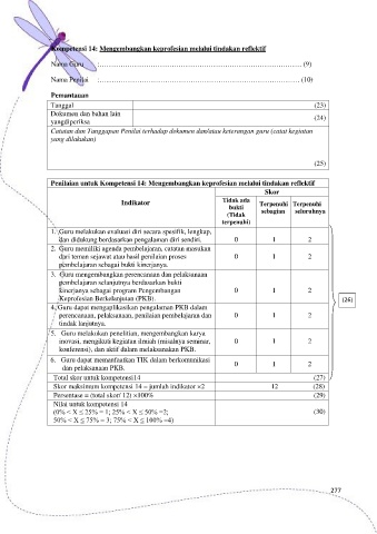 Penilaian untuk Kompetensi 14: Mengembangkan keprofesian melalui tindakan reflektif