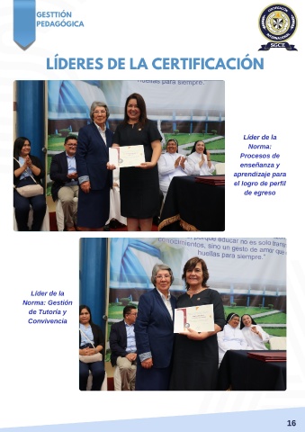 S GESTTIÓN PEDAGÓGICA LÍDERES DE LA CERTIFICACIÓN Líder de la Norma: Procesos de enseñanza y aprendizaje para el logro de perfil de egreso Líder de la Norma: Gestión de Tutoría y Convivencia A 16