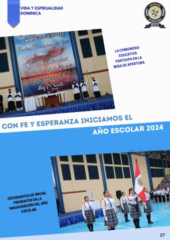 VIDA Y ESPIRUALIDAD DOMINICA LA COMUNIDAD EDUCATIVA PARTICIPA EN LA MISA DE APERTURA. Con fe y esperanza iniciamos el Año Escolar 2024 ESTUDIANTES DE INICIAL PRESENTES EN LA INAUGURACIÓN DEL AÑO A ESCOLAR. 27
